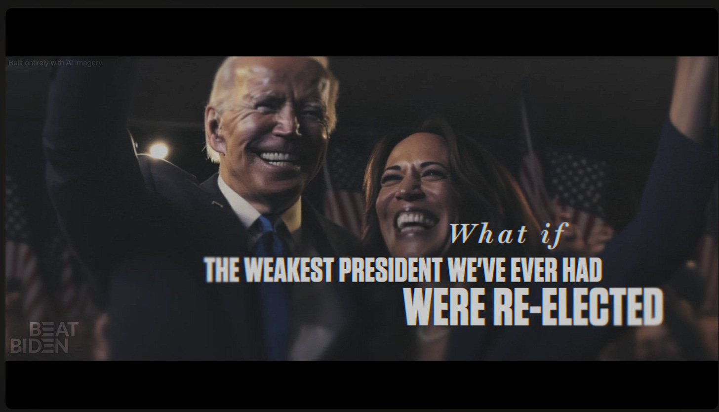 One key step came in April 2023, when the Republican National Committee released an attack ad against Joe Biden. Generative AI tools were used to generate still images that appeared in the ad. These images look pretty fake: Biden’s face resembles a wax figure in the frame I screenshotted below. Still, the ad racked up over 350,000 views on YouTube.