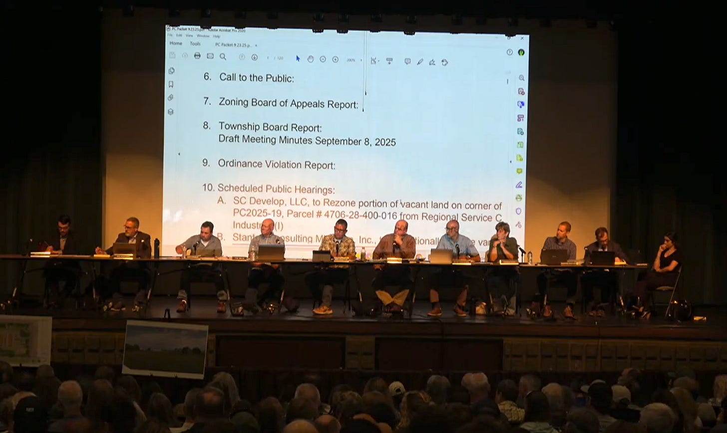 For example, on September 23, 2025, hundreds of people showed up to a planning commission meeting in Howell Township, a municipality of around 8,000 in southern Michigan. The planning commission had to move the meeting to a larger space in order to accommodate everyone.